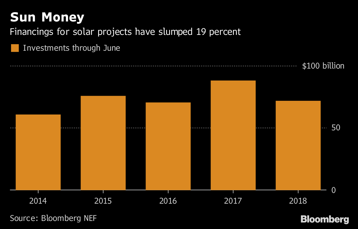 但中國并不是太陽能投資滯后的原因。太陽能電池板的平均價(jià)格在去年下降了19。這意味著太陽能發(fā)電場建設(shè)成本更低,因此需要的投資降低。